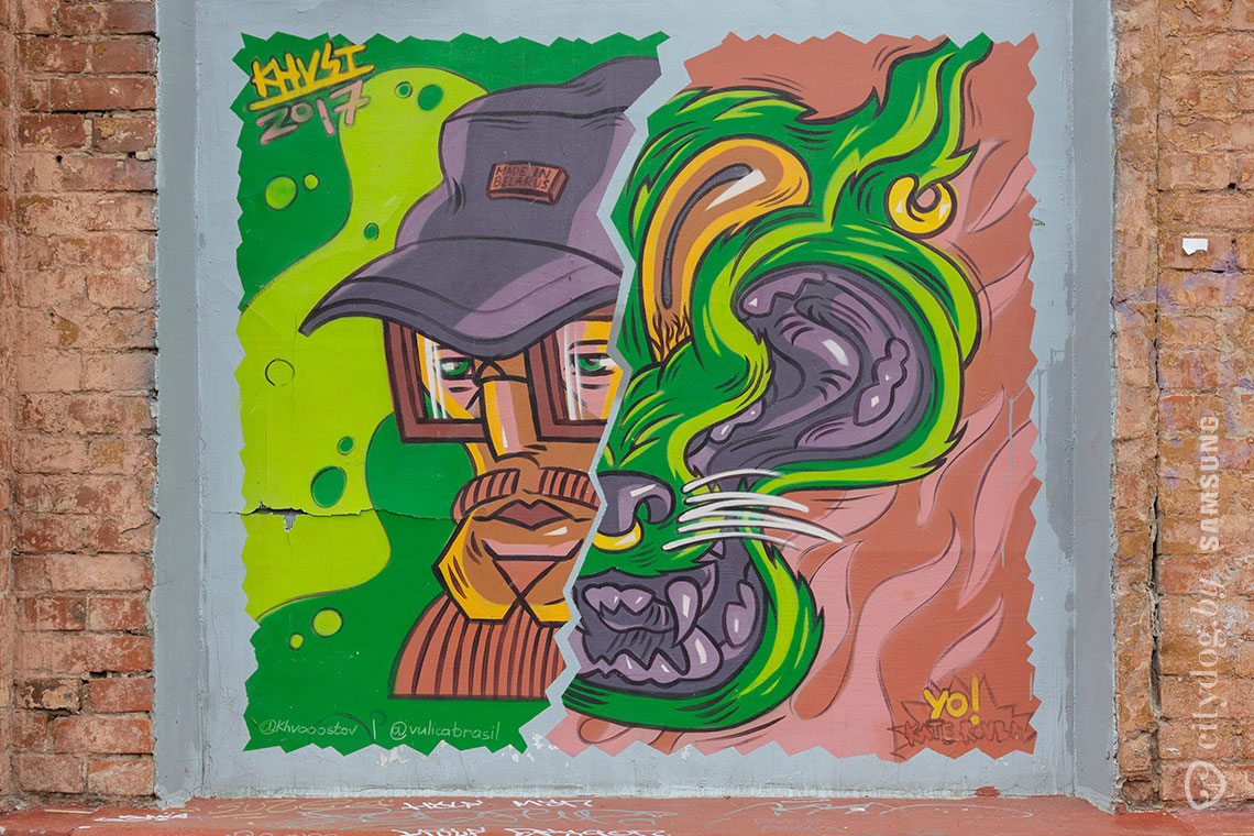– В этом году, когда мы рисовали мурал, во всю стену стояли строительные леса и висел баннер Vulica Brasil, а люди из органов все равно подходили и спрашивали, что мы делаем, кому-то звонили и перепроверяли, – вспоминает Хвостов. – Когда работаешь на улице, сразу видишь реакцию на свое творчество от жителей ближайших домов или случайных прохожих. Стоишь на одном месте и получаешь разные точки зрения – такой вот мгновенный фидбек. Чаще всего люди респектуют, но кто-то может сказать: «Лучше бы березку и ежика нарисовал».