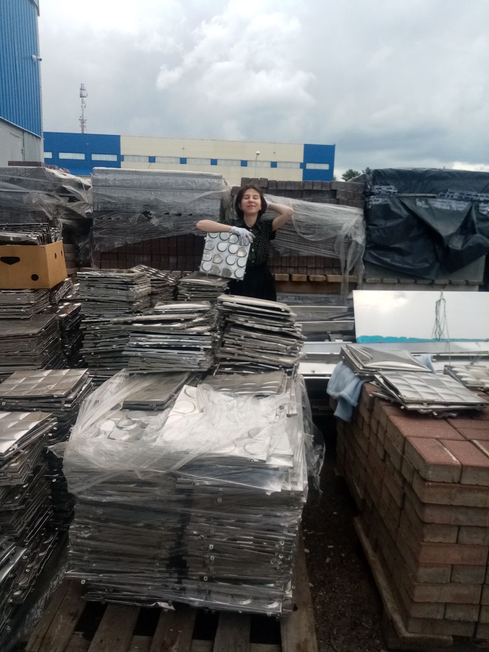 С этого и начались долгие процедуры по передаче панелей. В процессе мы несколько раз теряли и снова обретали надежду – по большей части из-за логистических вопросов. К счастью, обе стороны были заинтересованы, чтобы сохранить максимум «чешуи», и сотрудники «Виталюра» помогли нам с логистикой: добраться до склада Королев Стан, отобрать для фондов музея необходимое количество лучше сохранившихся панелей (около 50 «квадратов») и транспортировать это все в музей.