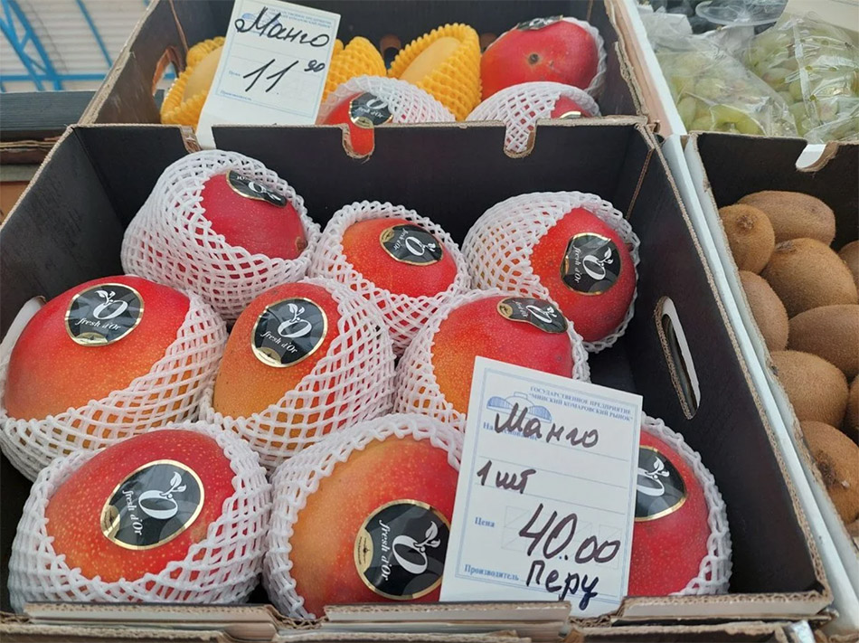 Говорит, она не интересуется, кто ее покупатели, но их стало меньше. Из первых и дорогих ягод на Комаровке уже появились узбекская черешня (49,90 руб.), греческая клубника (8,50 руб.), перуанская голубика (120 руб. за килограмм). Если клубнику еще берут, то на черешню и голубику просто смотрят. Манго, 40 рублей за штуку, обходят стороной.