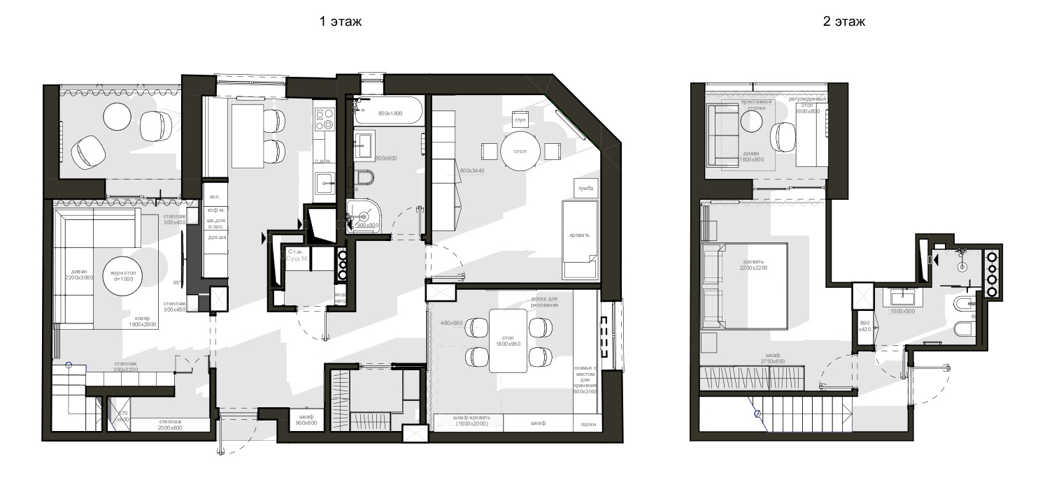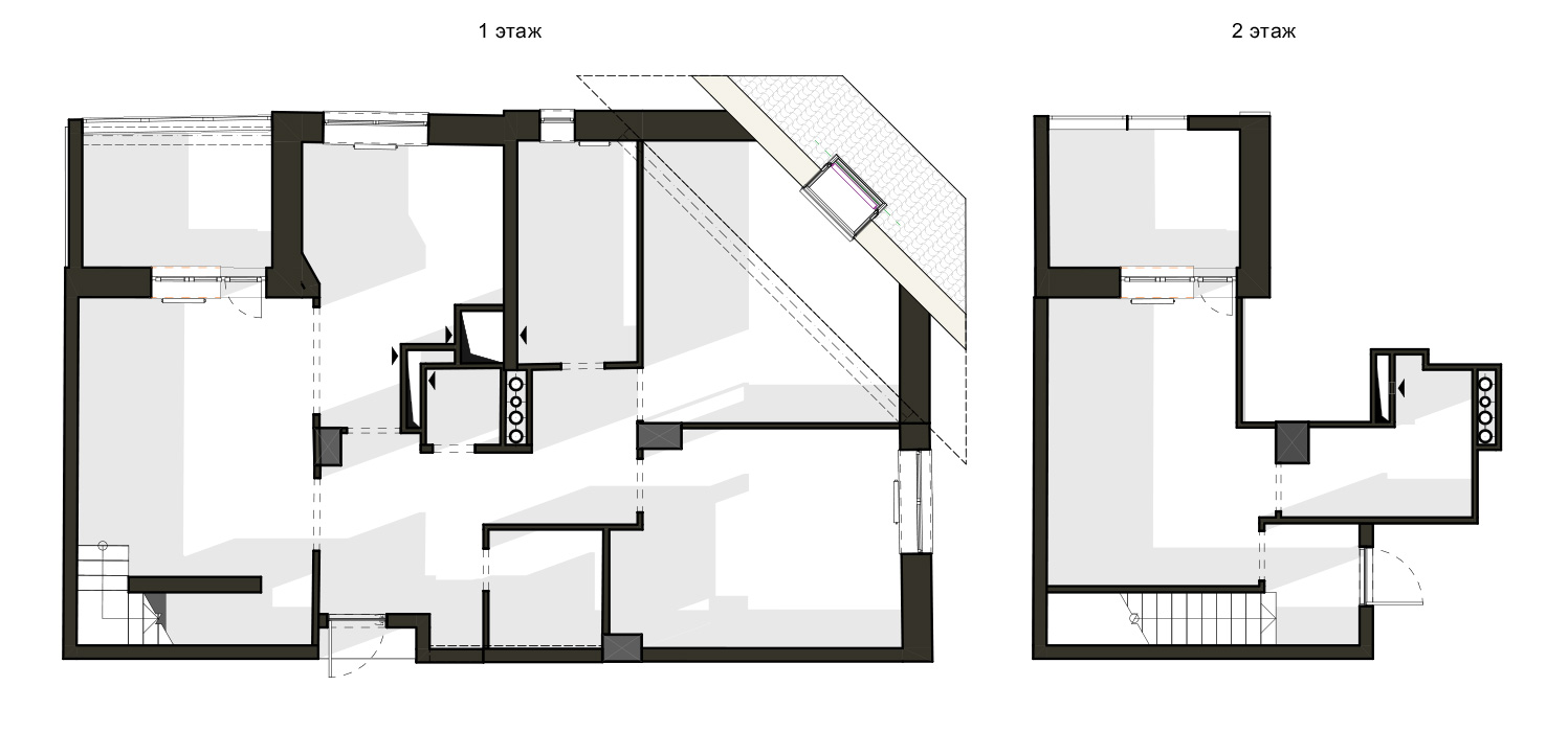 – Изменения в планировке мы, как правило, предлагаем только тогда, когда уверены, что их согласуют. Но с этим проектом получилась нестандартная ситуация. Изначально мы хотели снести перегородку между кухней и лоджией на первом этаже, чтобы сделать примыкающую к кухне и гостиной столовую.