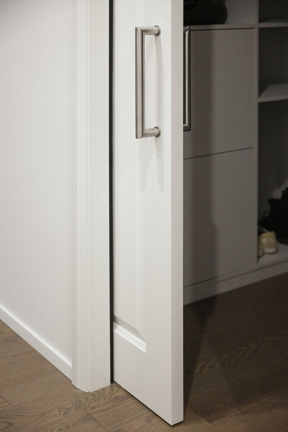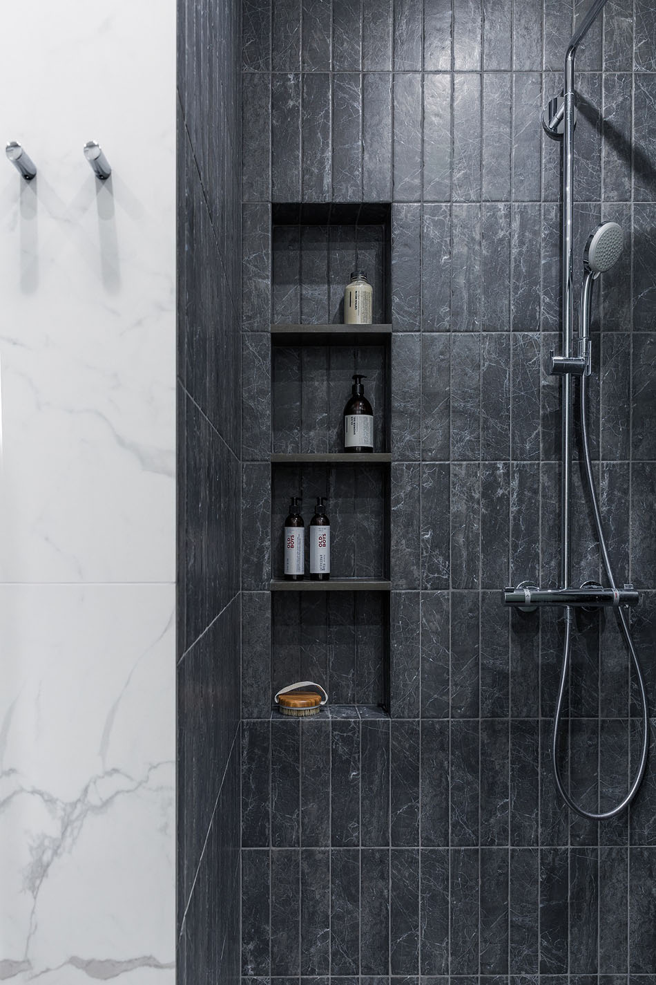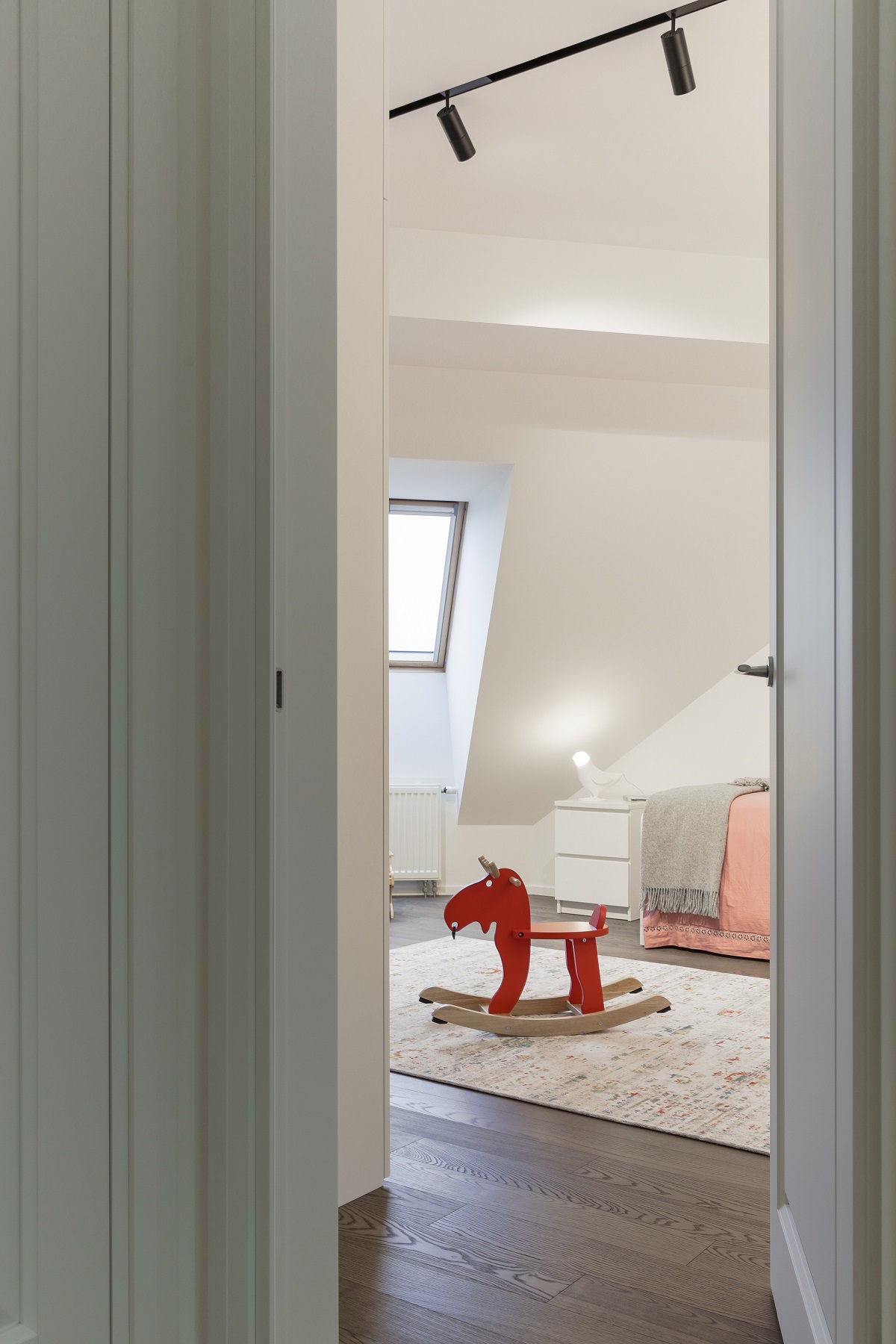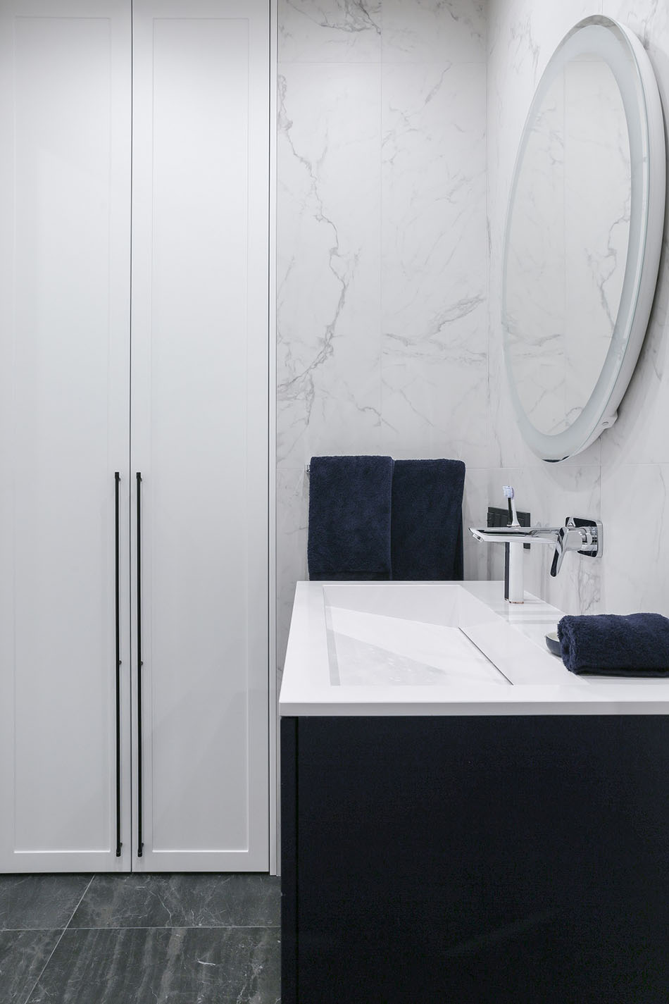 – Также хорошим решением было создать две комнаты бытового назначения: отдельные гардеробную и постирочную, – добавляет Марьяна. – Уже после заселения хозяева очень нас за них благодарили, потому что действительно удобно, когда в доме есть много мест для хранения, особенно для таких вещей, как, например, сумки, чемоданы, коляски, велосипеды и так далее.