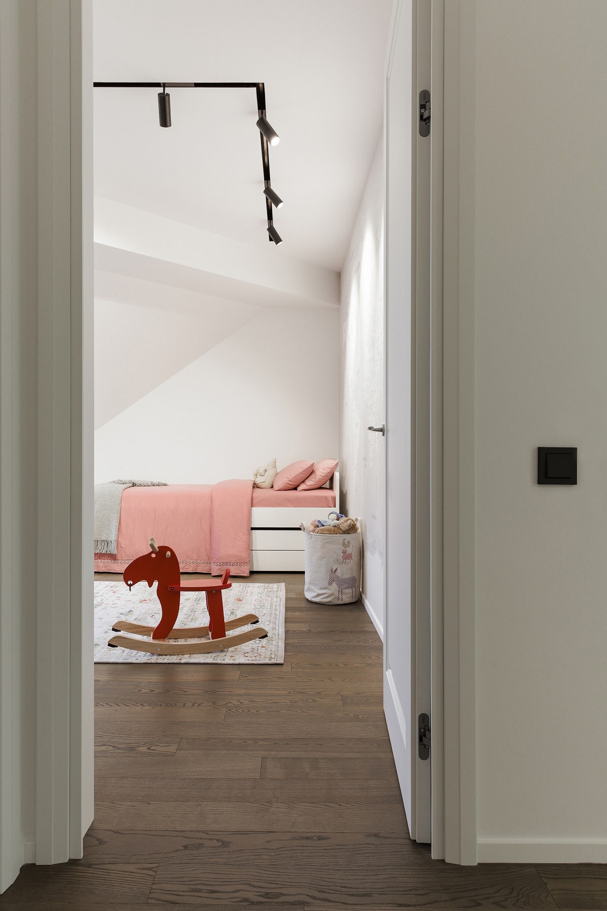 Между санузлом и комнатой для творчества расположилась детская. Мебели в ней немного, и со временем она будет меняться в зависимости от нужд ребенка.