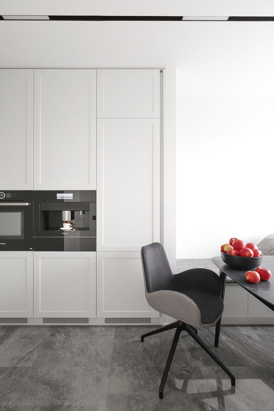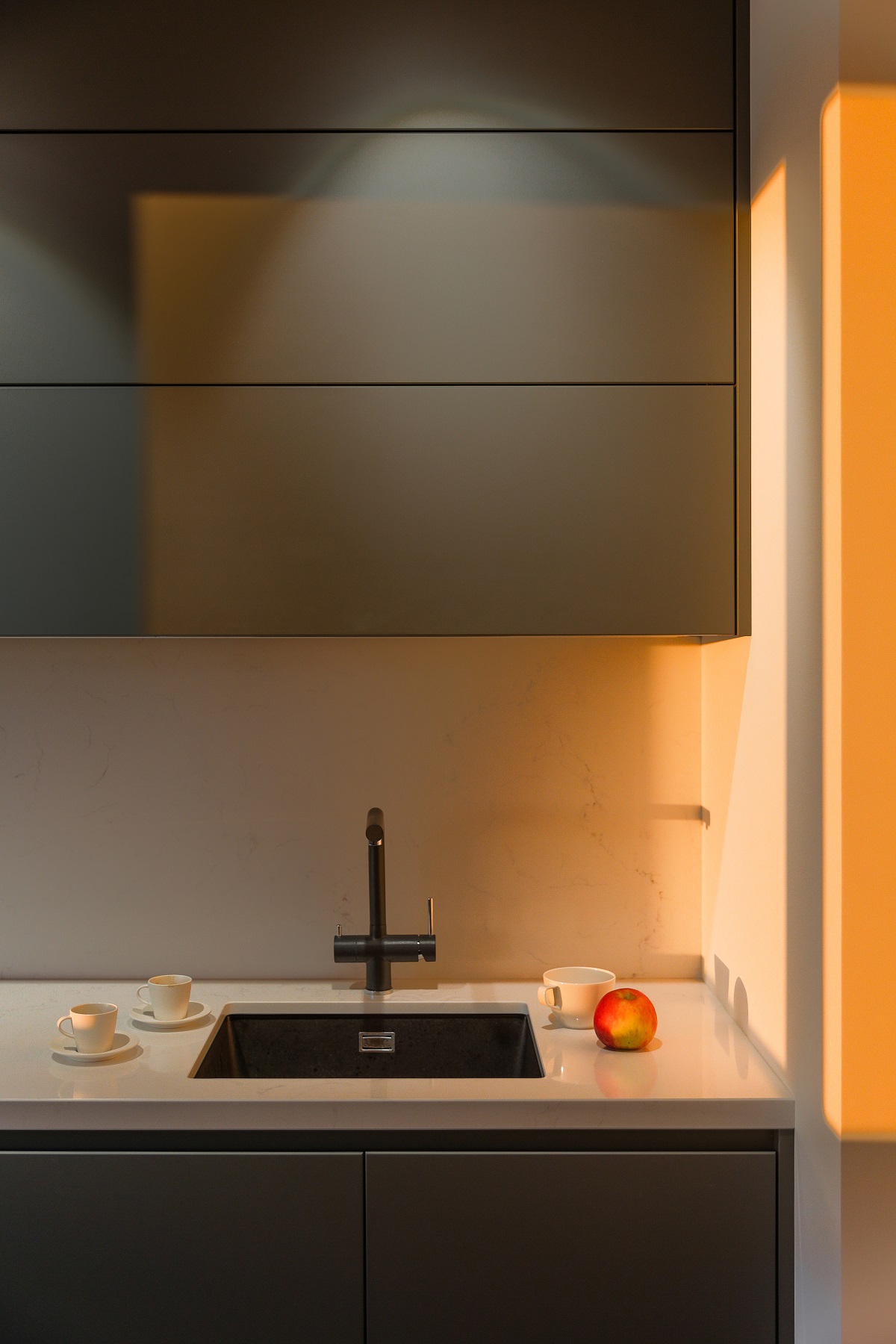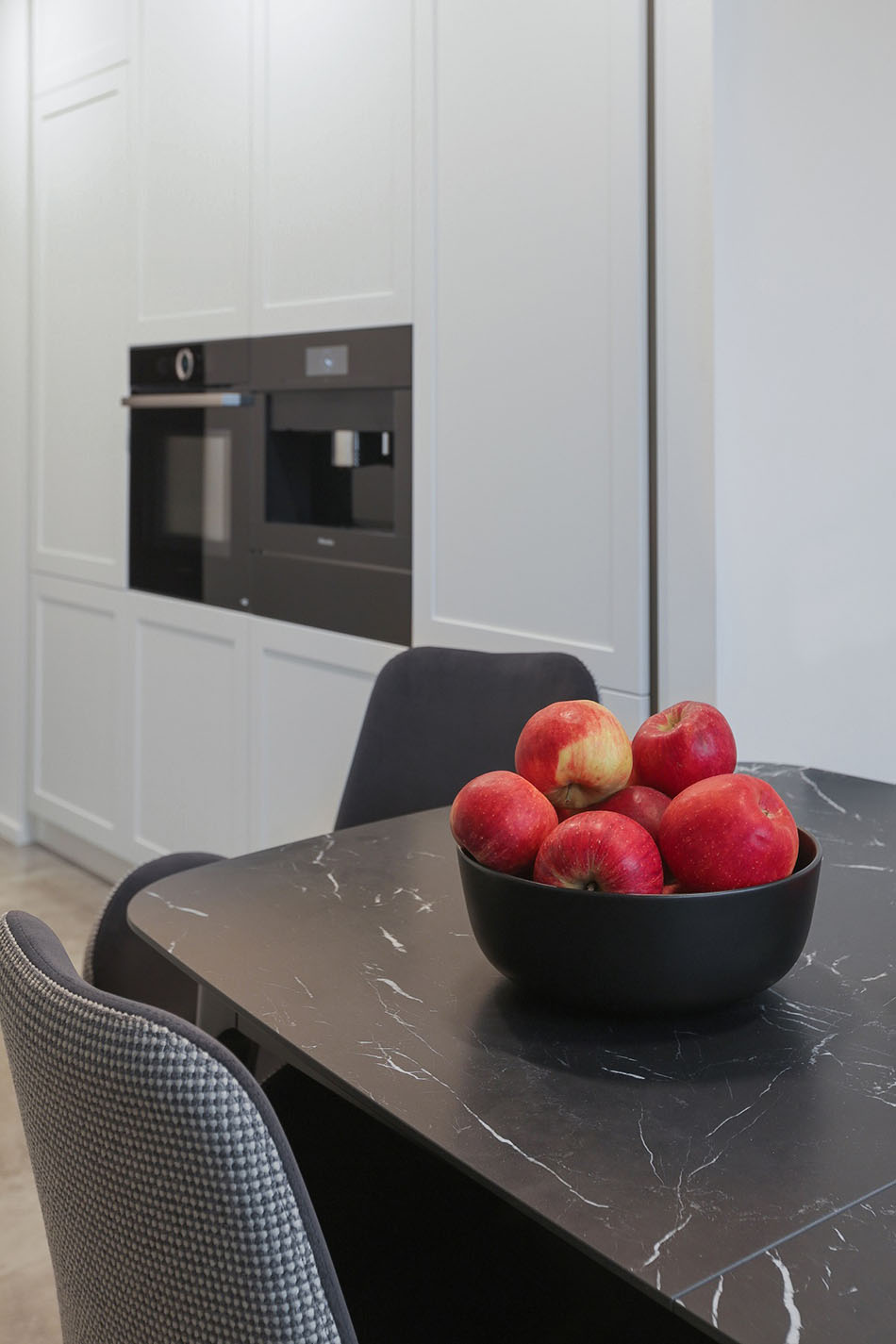 – Заказчики очень любят кофе и сами шутили, что всю квартиру нужно строить вокруг кофемашины, – улыбается Марьяна. – Кстати, ее мы выбирали очень долго и именно эту модель согласовали уже после того, как началась стройка, поэтому не обошлось без некоторых технических нюансов.