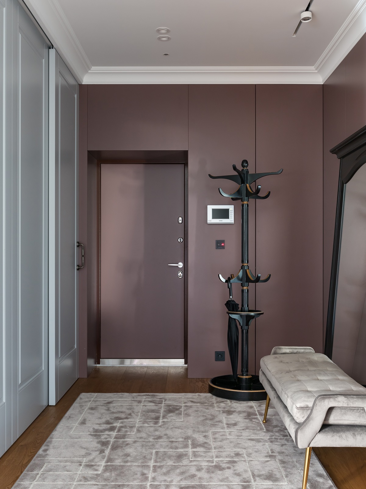 За стеновыми панелями в прихожей спрятаны все щитки.