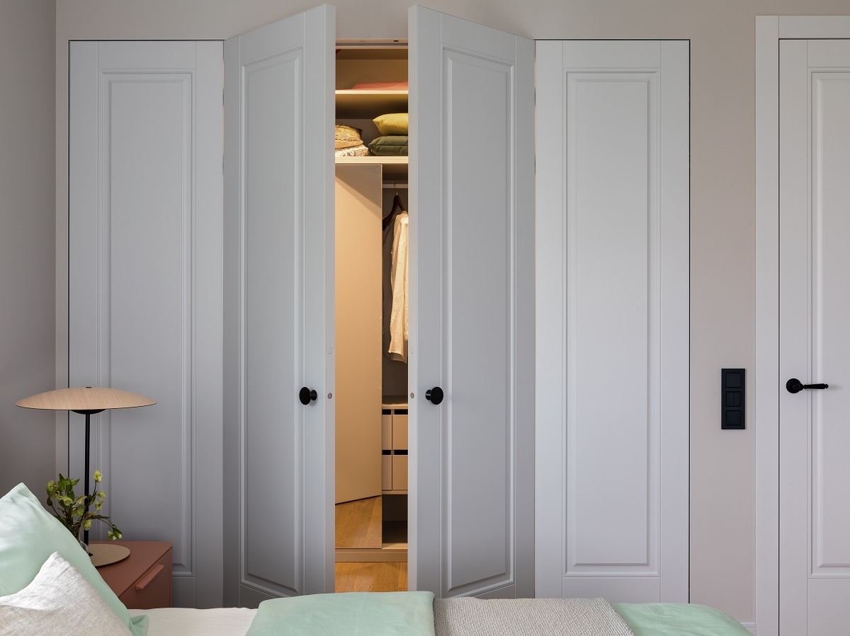 – Идеальная спальня – та, в которой есть отдельная гардеробная и свой санузел. И в этом проекте именно так и получилось, – говорит Александр. – Более того, в ванной удалось разместить не только раковину и душевую кабину, но и красивую островную ванну, которую мы расположили у окна.