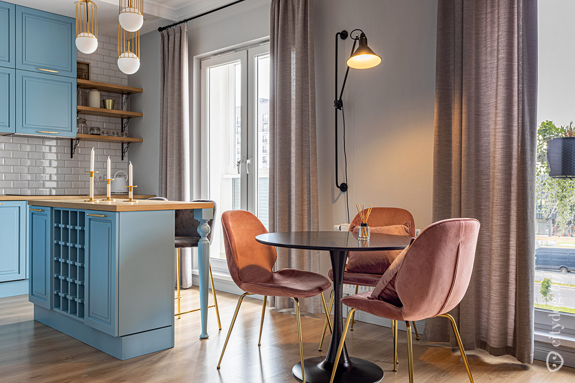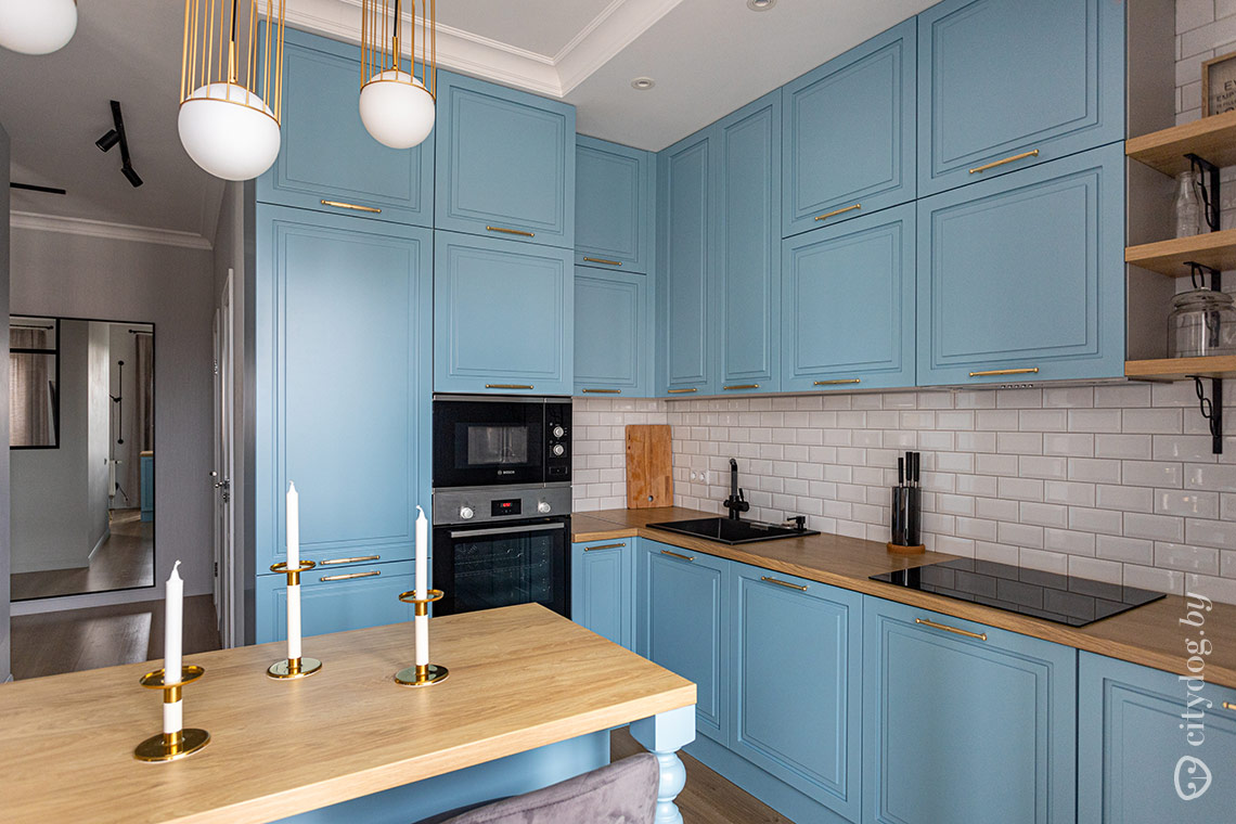 – Я хотела сделать кухню без верхних шкафов – просто открытые полки. Но Анастасия меня переубедила, объяснив, что это только на фото смотрится красиво, в реальности же на них будет собираться очень много пыли. И моя единственная открытая полка тому подтверждение.