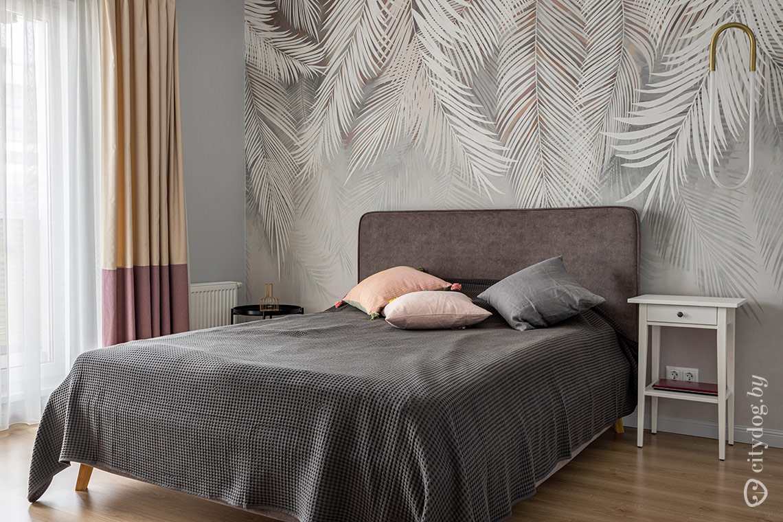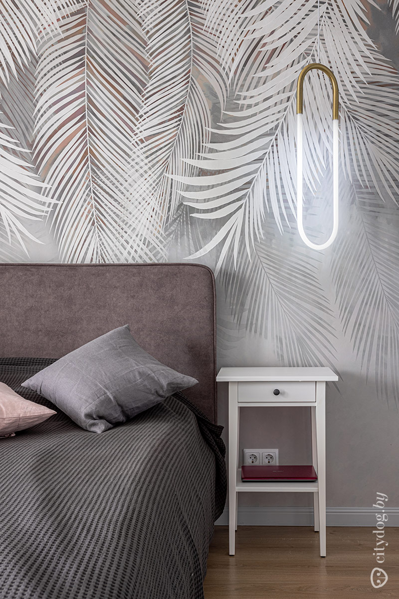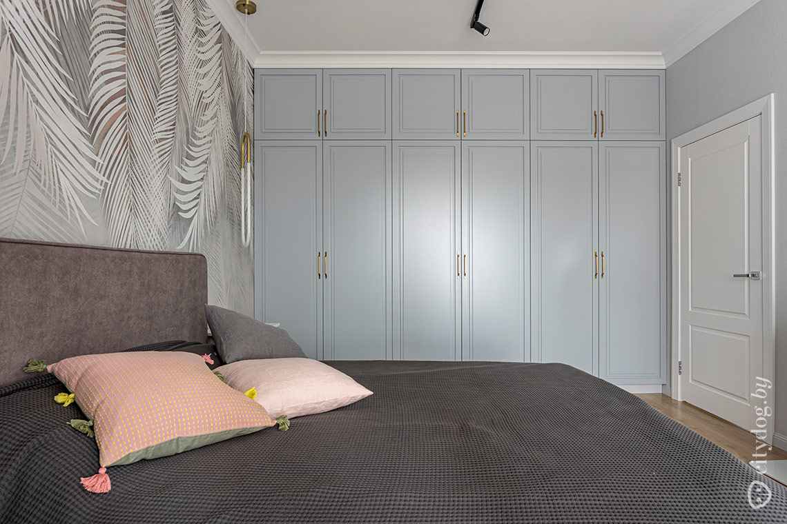 – В спальне разместили на одной стене декоративное панно, провели свет, чтобы повесить лампу около кровати, – продолжает экскурсию Елизавета. – Еще я очень хотела гардеробную, и Анастасия предложила мне несколько вариантов, как из небольшой спальни «украсть» немного места. Самым удобным оказалось сделать шкаф во всю стену: он достаточно глубокий, и в нем очень много места для хранения.