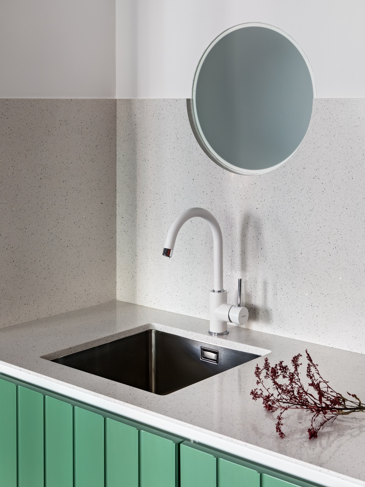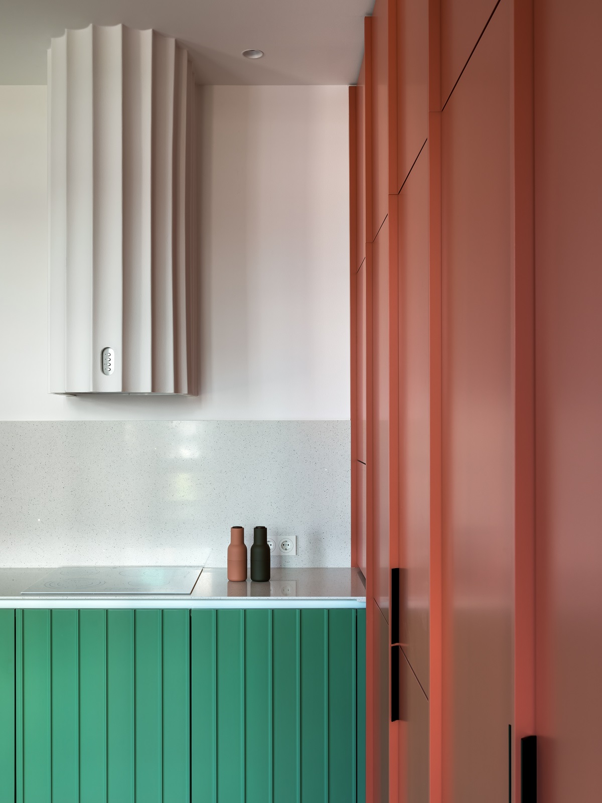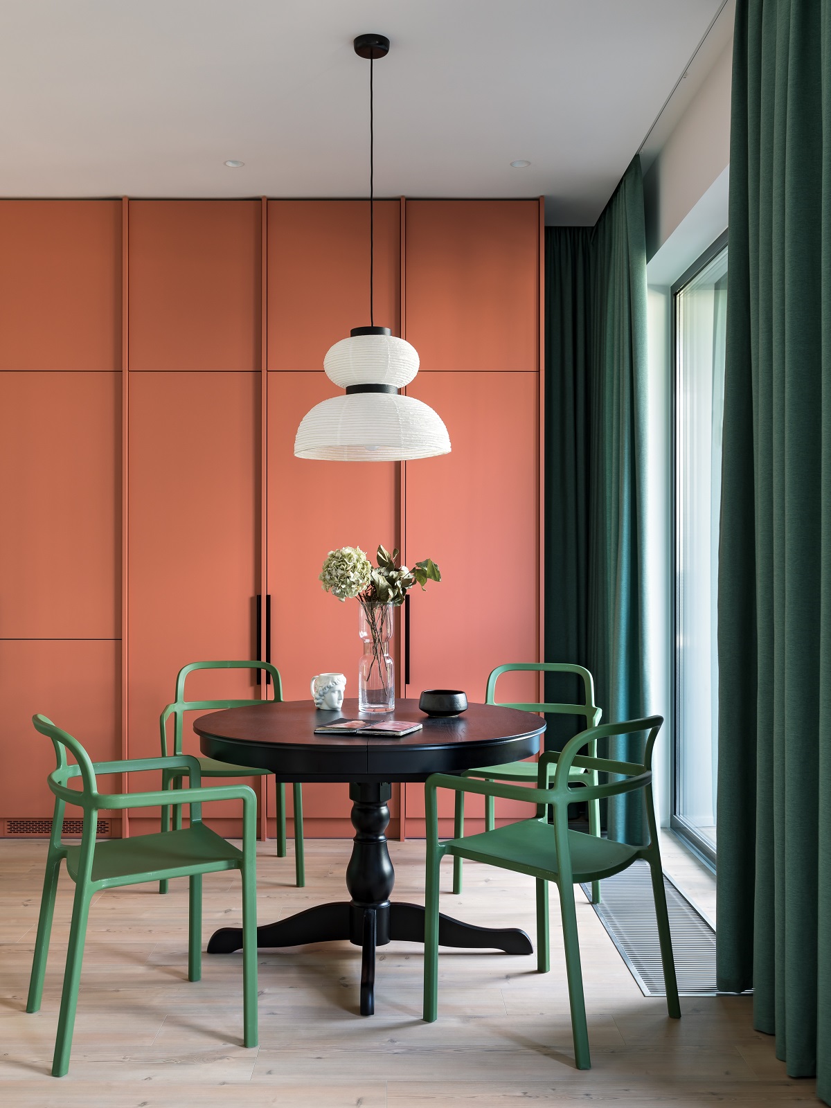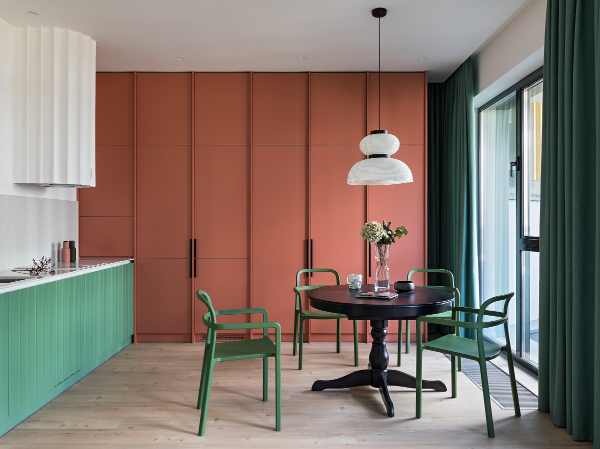 – Мы взяли оттенки зеленого, кораллового, совместили их с белым и разбавили мелким декором.