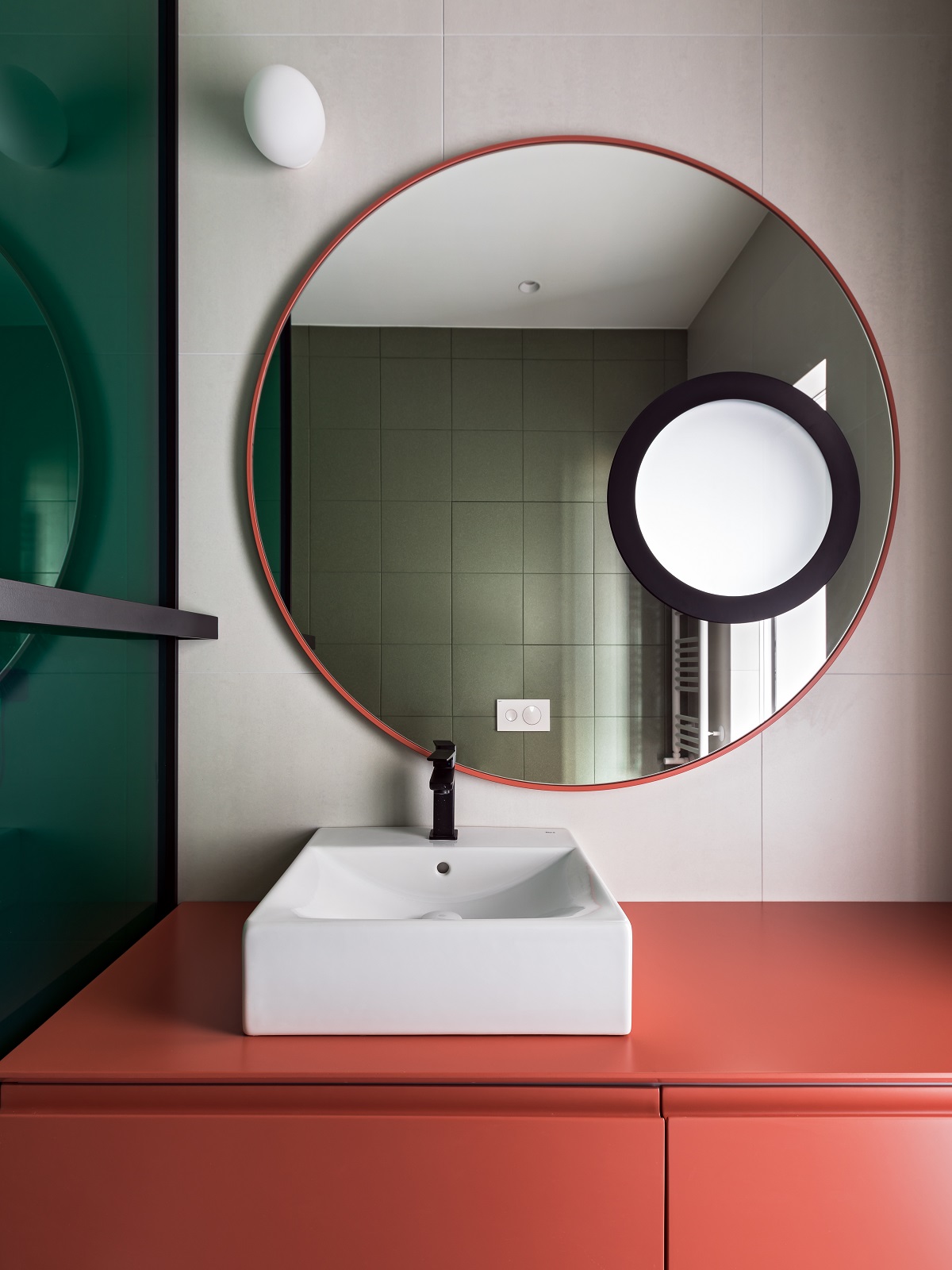 – Немало сил ушло на то, чтобы разработать конструкцию окошка над умывальником, ведущего в санузел, – добавляет Евгений. – С одной стороны, оно выполняет декоративную функцию, с другой – еще и практическую: днем дает дополнительный свет.