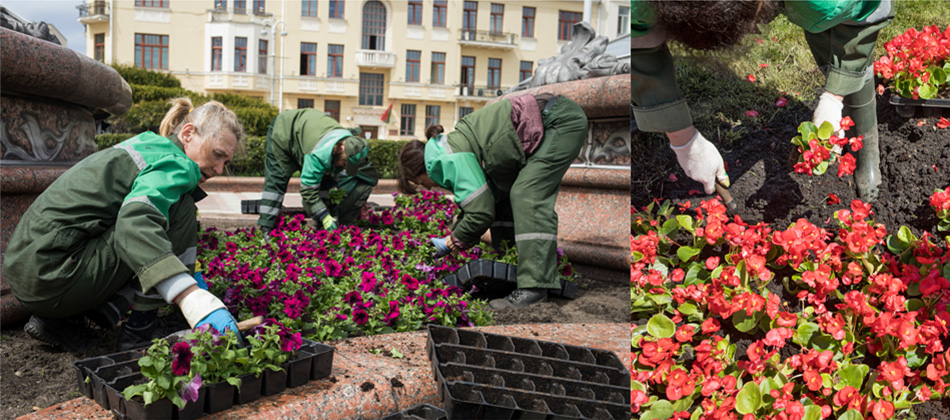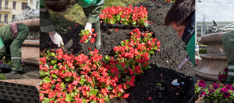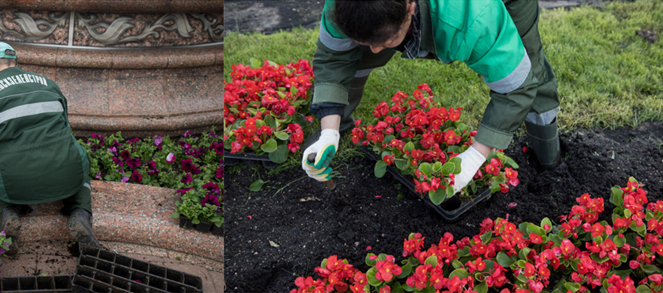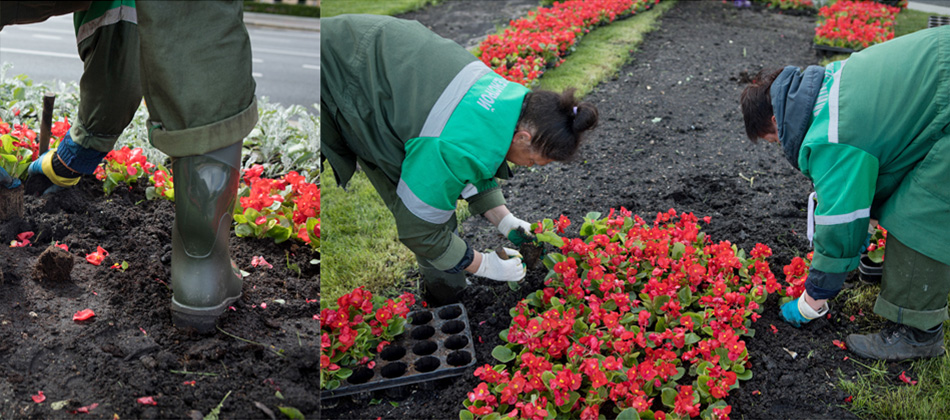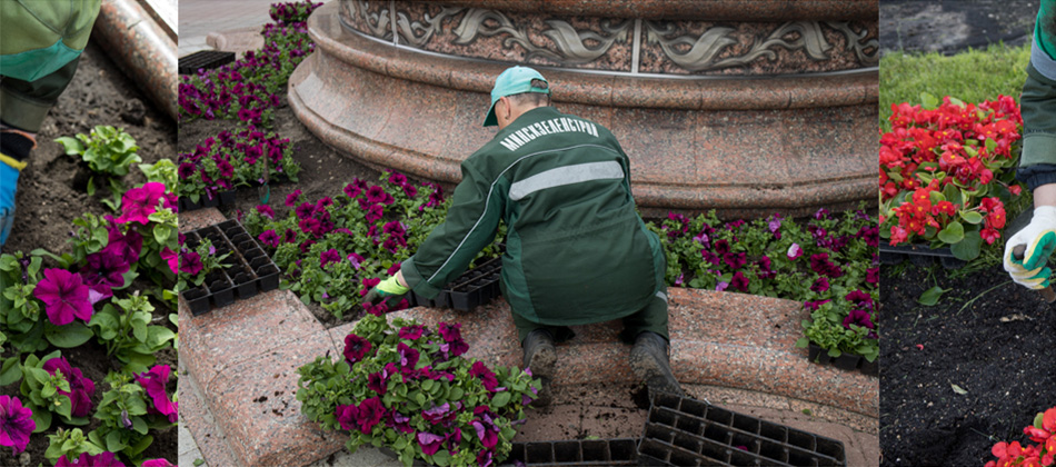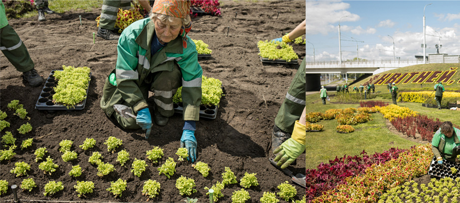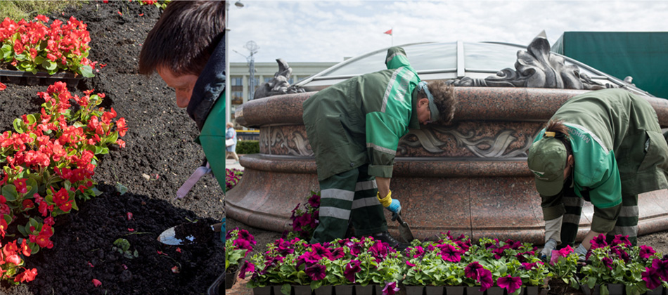 У нас в Уручье нет таких посадок цветов, как в центре, у нас кусты и деревья. Нашу бригаду посылают помогать центральному управлению, когда за день надо высадить 30 000 растений.