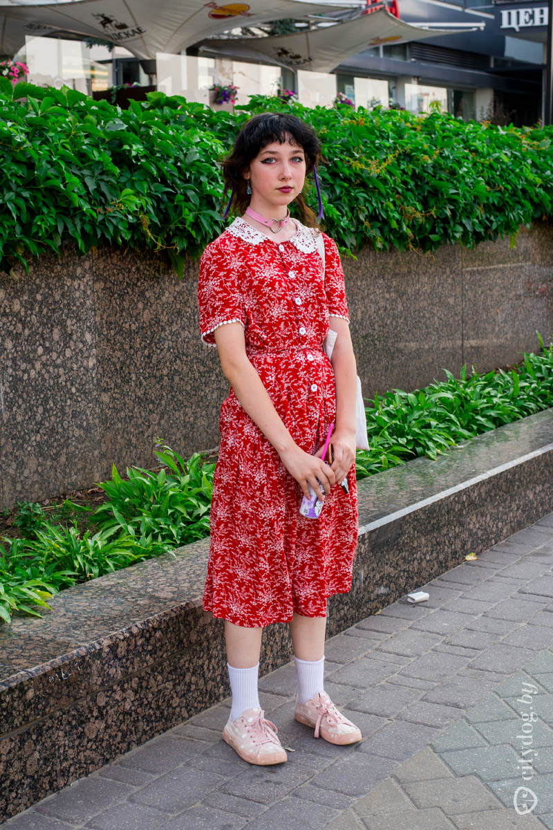 – Платье, кажется, нашла в секонде. Яркие вещи ношу часто: они мне нравятся намного больше, чем все остальные. Черный вообще не ношу – мне кажется, он старит.