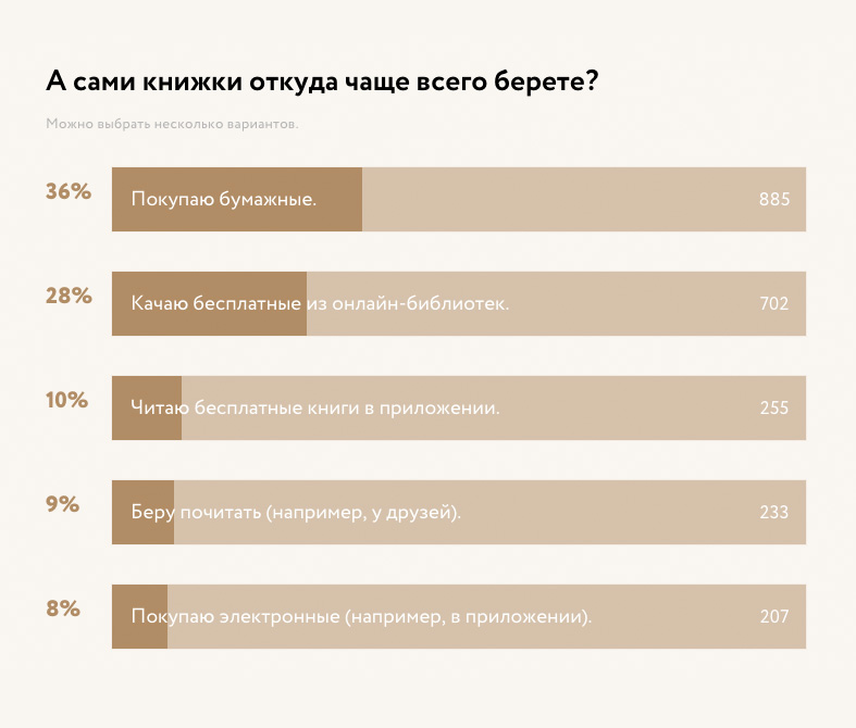 Откуда берем книги? 36% чаще всего покупают бумажные