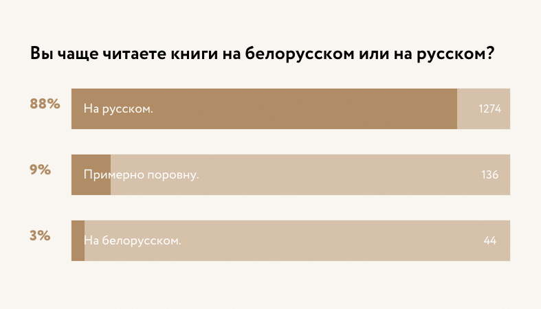 Только 3% чаще читают книги на белорусском, еще 9% – примерно поровну с русским.