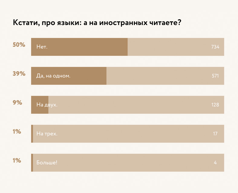 А вот хорошая: половина ответивших читает на одном или нескольких иностранных языках