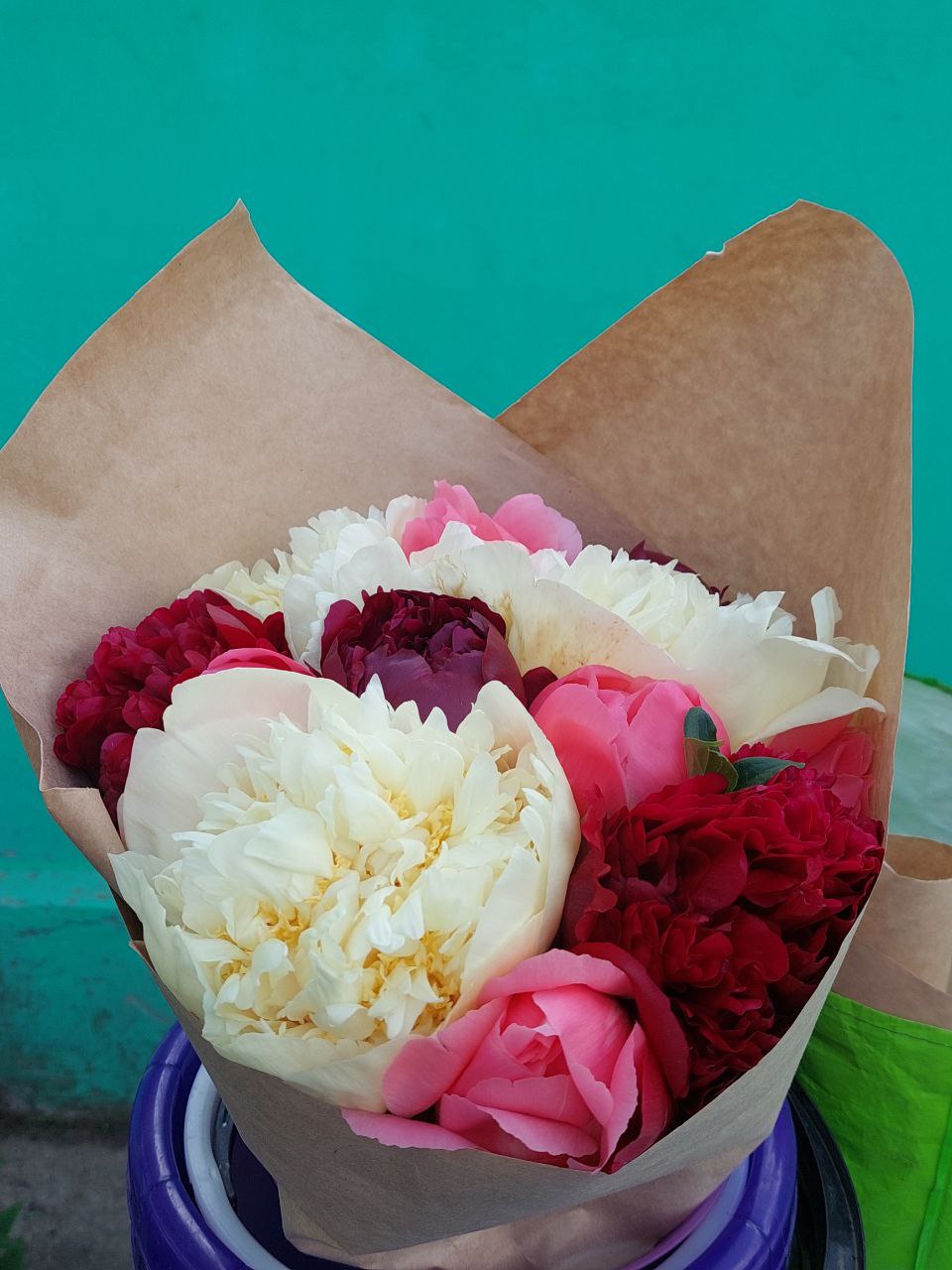 Белые пионы оказались очень уж хороши. Но и микс точно не хуже. Какой из них стоит 10, а какой – 100 рублей? Ответ – в конце заметки.