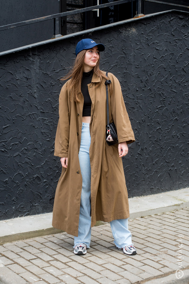 Второй образ с тренчем, скорее, про минимализм. Нам нравится, насколько гармонично и хорошо смотрятся вместе все цвета, нравится отсутствие лишних деталей и нарочитая простота наряда. Выглядит все максимально завершенно и целостно.