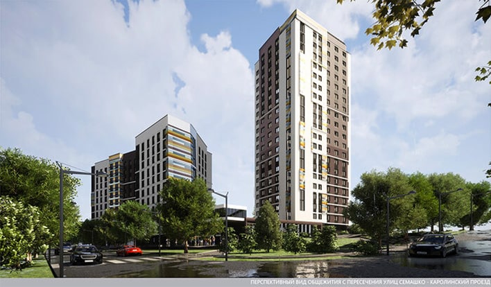Общежитие строится в студенческой деревне в границах проспекта Дзержинского – улицы Семашко – Каролинского проезда, сообщает телеграм-канал «Минскстрой». Оно рассчитано на 1030 мест и будет состоять из двух корпусов: 21-этажного для БГУИР и 11-этажного для БГМУ. Корпуса будут объединены между собой двухэтажной пристройкой.