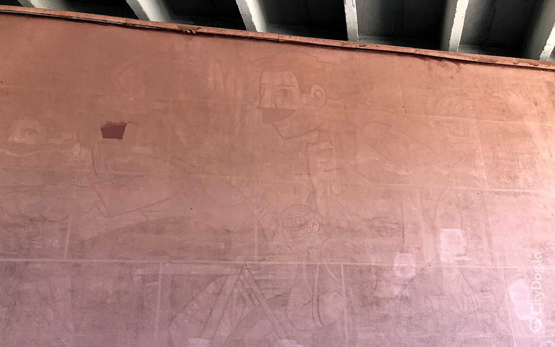 – Постепенно стенка протекала, красочный слой в этой части мурала повреждался, где-то менял цвет. Думаю, что это и послужило толчком (чтобы все было аккуратно и стерильно). Ну и, конечно же, нежелание лишний раз заморачиваться, ведь просто закрасить легче.