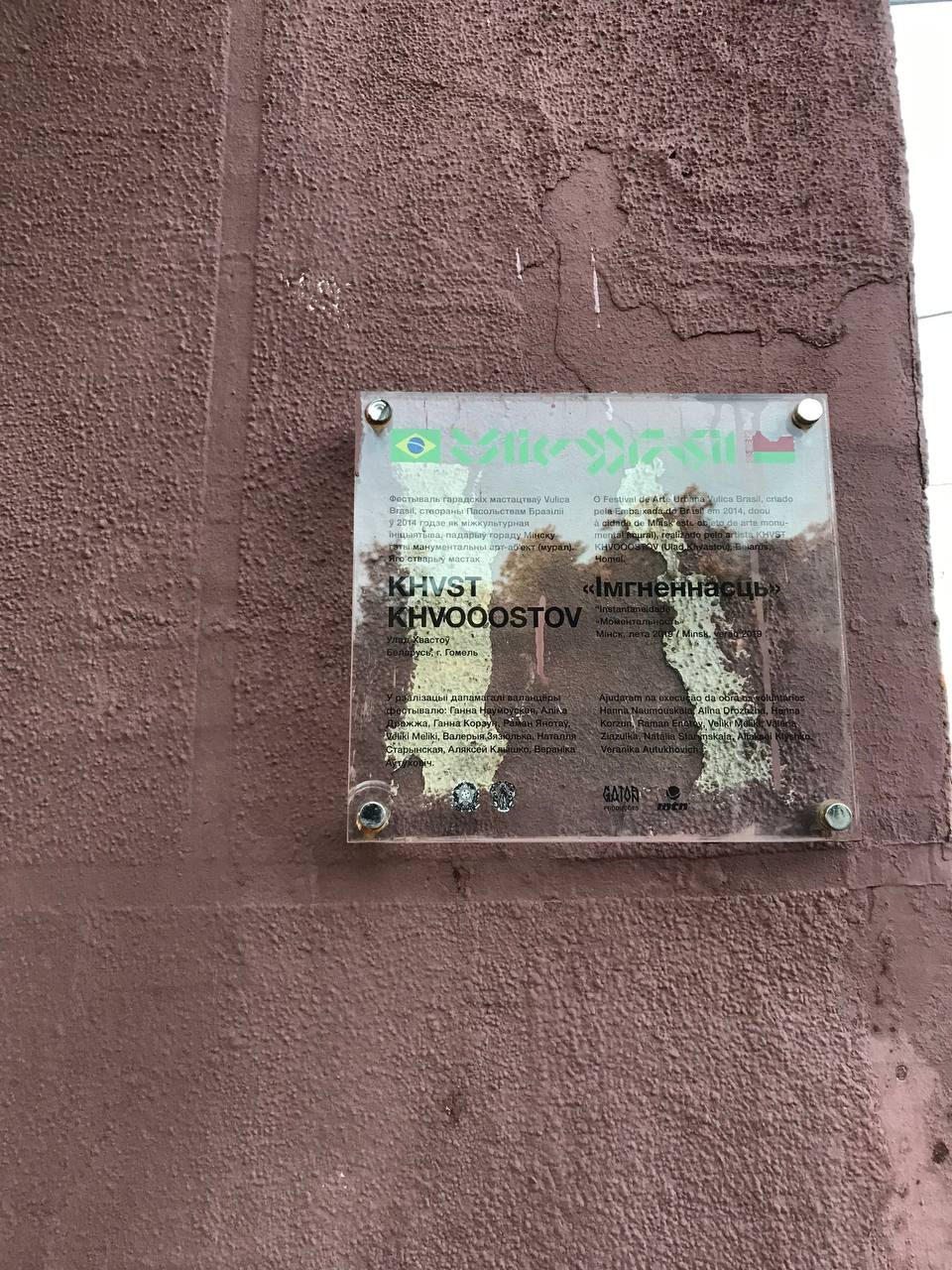 Как рассказала нам одна из волонтерок, команду фестиваля Vulica Brasil никто не предупреждал, что мурал собираются закрасить, – «хотя, по идее, должны были». На стене с муралом висела табличка, что рисунок создан в рамках фестиваля.