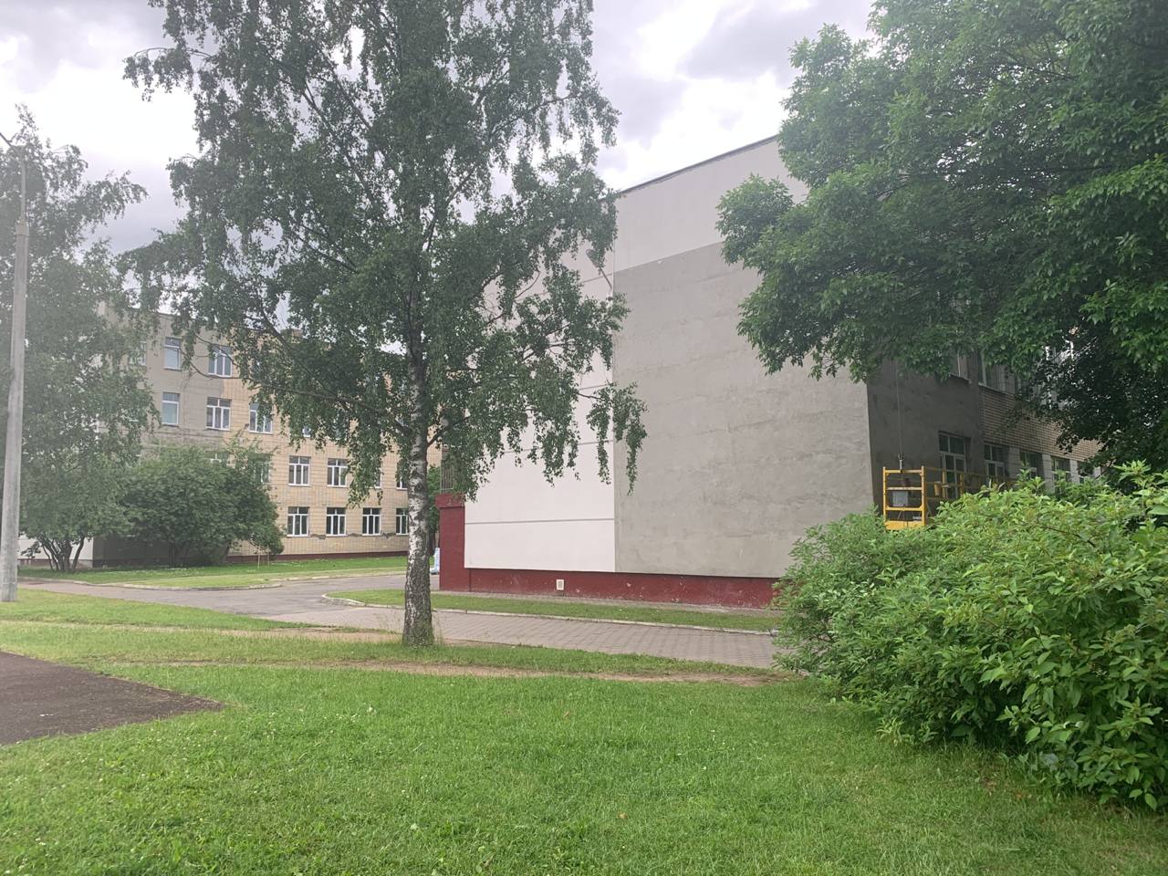 В Центре по обеспечению деятельности управления по образованию администрации Советского района Минска журналистам сказали, что идет капитальный ремонт фасада, его штукатурят, красят. Закончат работы ориентировочно к 20-м числам июля.