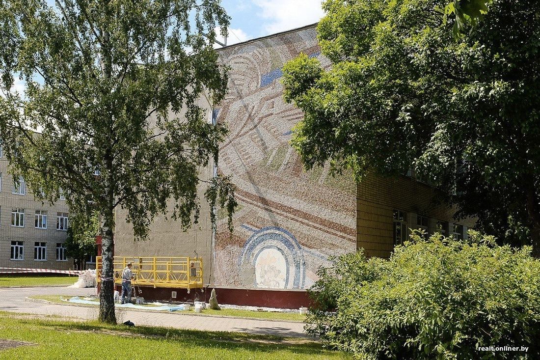 Если помните, CityDog.io писал, что на прошлой неделе в Минске начали заштукатуривать старую советскую мозаику, появившуюся на минской гимназии №15 на улице Максима Богдановича, 84 еще в 1973 году. Теперь на торце здания мозаики больше нет.