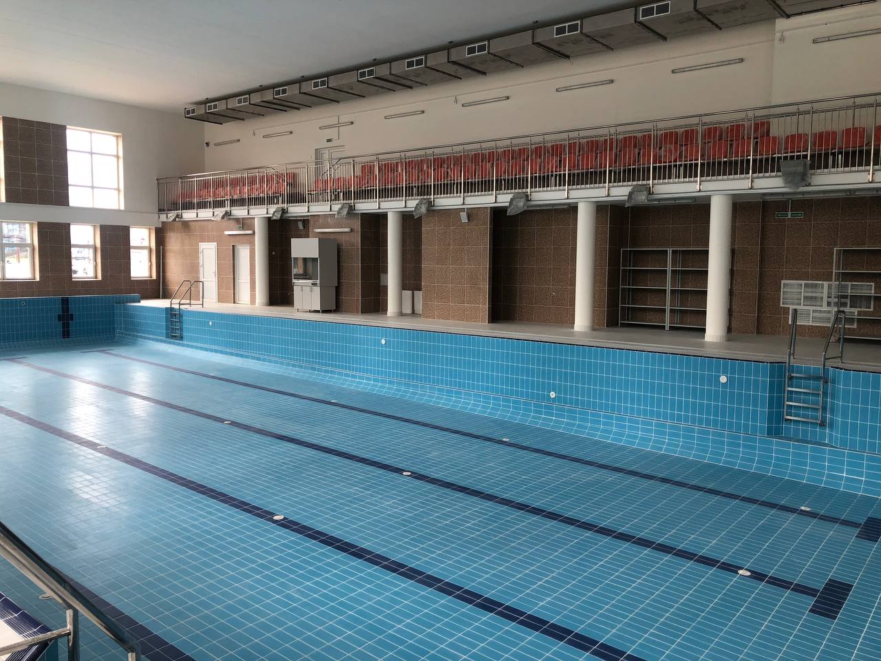 В новой школе есть большой бассейн, актовый зал на 280 посадочных мест, артистическая и костюмерная, спортивный и тренажерный залы.