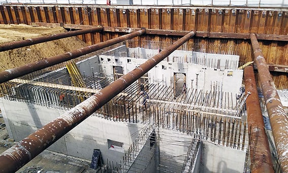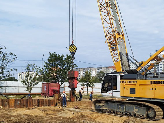 Станция «Слуцкі гасцінец» строится с применением шпунтового ограждения котлована: как только конструктив смонтирован, шпунт переносится для дальнейшего продолжения формирования котлована. Кстати, с использованием данной технологии, обеспечивающей высокую надежность контура, возводится и ветка съезда, ведущая к депо «Слуцкое», говорится в посте.